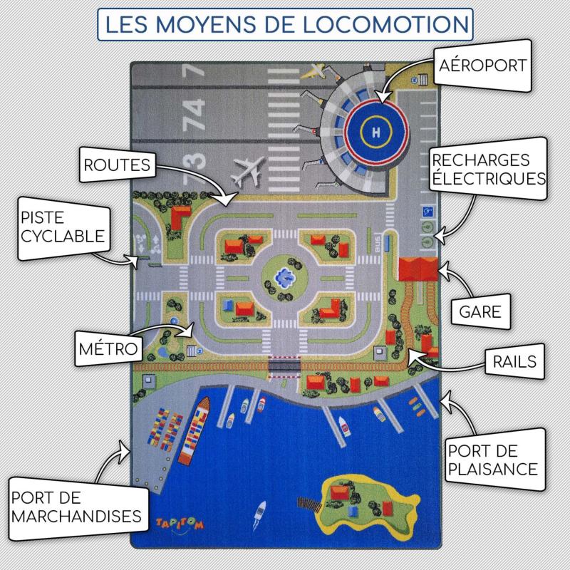 - Ce tapis favorise le partage et la coopération entre enfants, mais aussi sensibilise l'enfant sur tous les moyens de locomotion dans une ville.